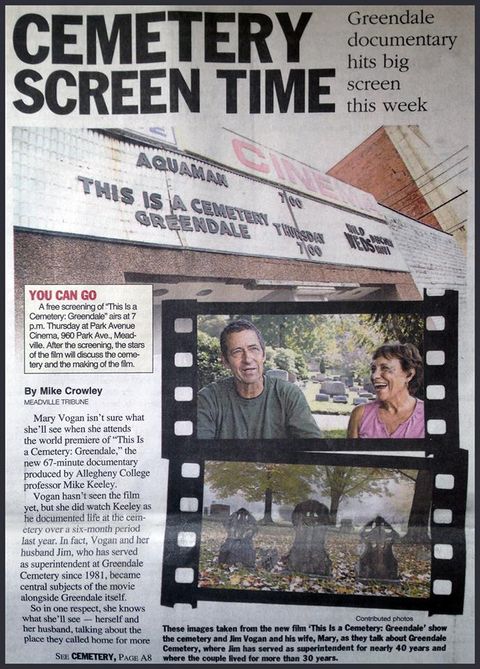 We were proud to be the subject of "This is a Cemetery: Greendale", a documentary film by Michael Keeley. Mr. Keeley is a Professor of Communication Arts at Allegheny College.